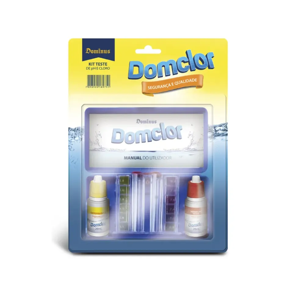 • Kit para teste de pH e Cloro. Excelente auxiliar para um controle efetivo da qualidade da água da piscina. Blister com estojo, manual do utilizador, comparador de análise e uma unidade de 20 ml dos reagentes Vermelho Fenol e Ortotolidina.