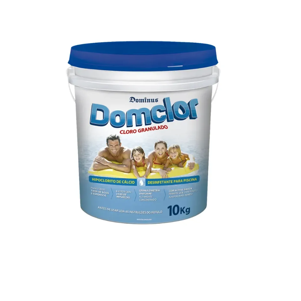 • Com o sistema de filtração em funcionamento na posição filtrar, aplique 4 gramas de Cloro Granulado Domclor para cada m³ (1000 L) de água. Em caso de água turva, odores desagradáveis ou irritações nos olhos, ajuste pH e alcalinidade para as faixas ideais e posteriormente, faça uma supercloração com 14 gramas de Cloro Granulado Domclor para cada m³.